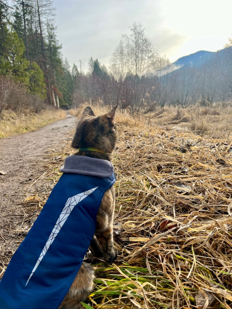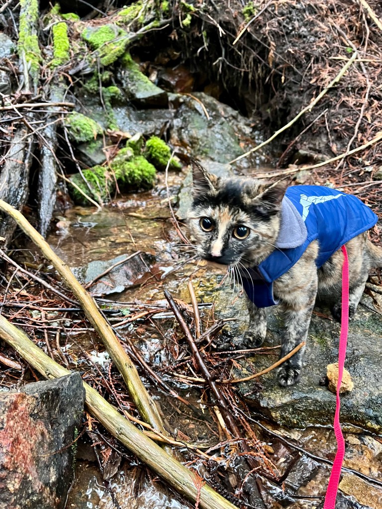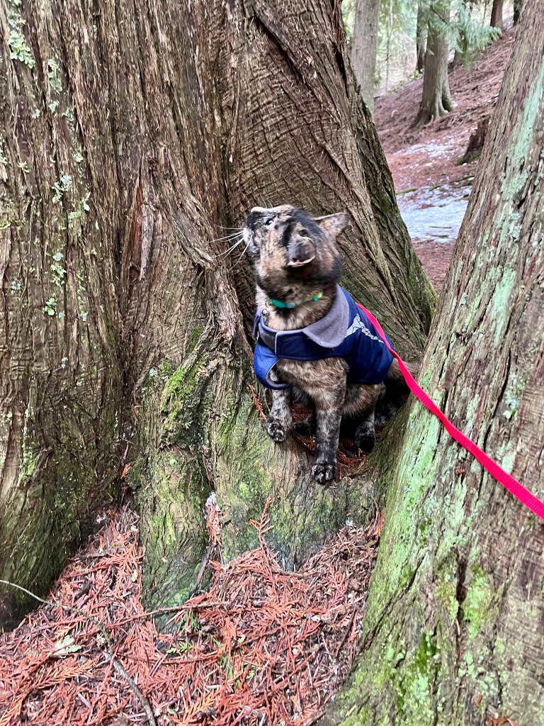 This was Lucille’s first hike in the forest. She inspected the tree’s and meowed at all the tree trunks. Not sure what she was saying.