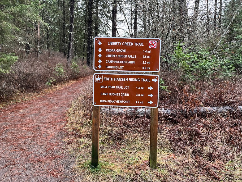There are a multitude of possibilities starting from this location. I’m covering the so called waterfall as that’s what I was able to complete this time (Seriously, this may be the least climactic waterfall in the history of waterfalls). However, if you like to go further, there’s the Liberty Lake Loop, access to old logging roads, Camp Hughes Cabin and a trail up to Mica Peak.