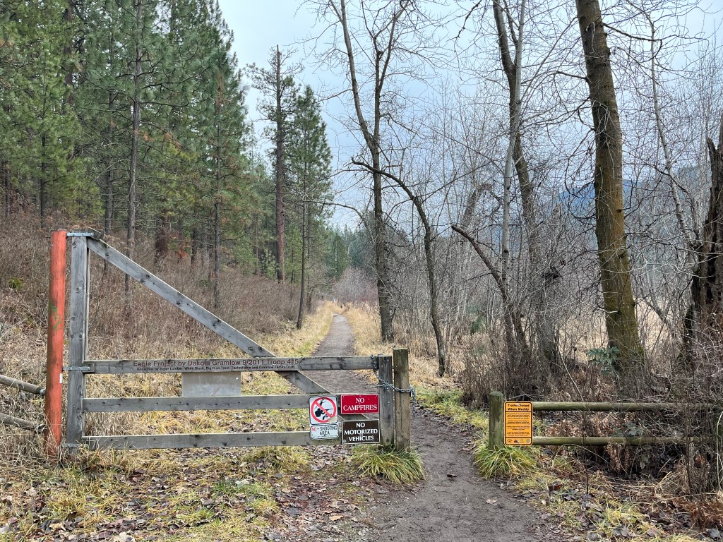 Starting from the first parking lot (by the playground) you’ll head through Liberty Lake Regional Park, past a pavilion and small amphitheater. Continue through the campground and you’ll find a gate to the main trail. This park is paid use for part of the year, so depending on the season, you’ll pay a fee to enter.