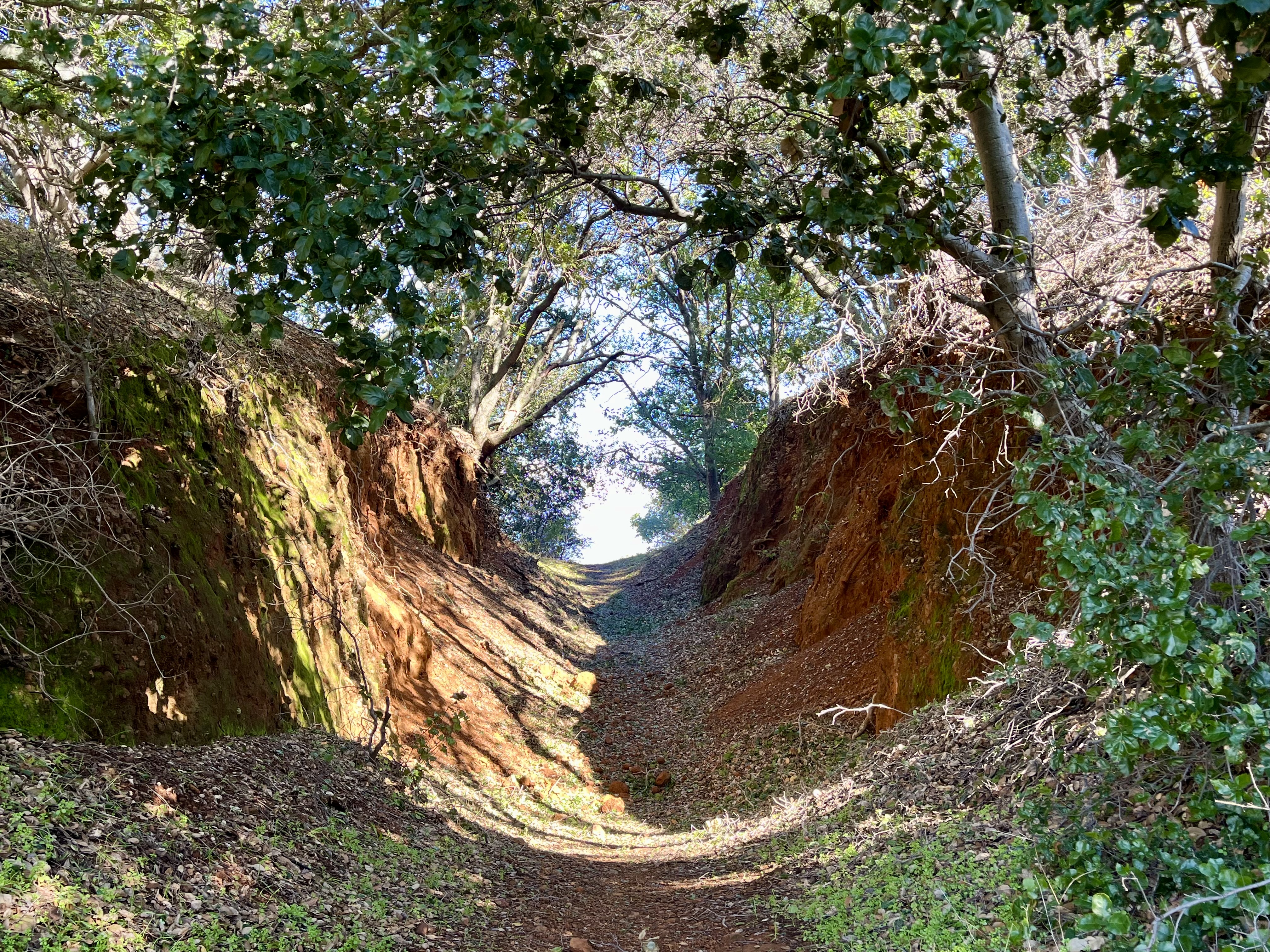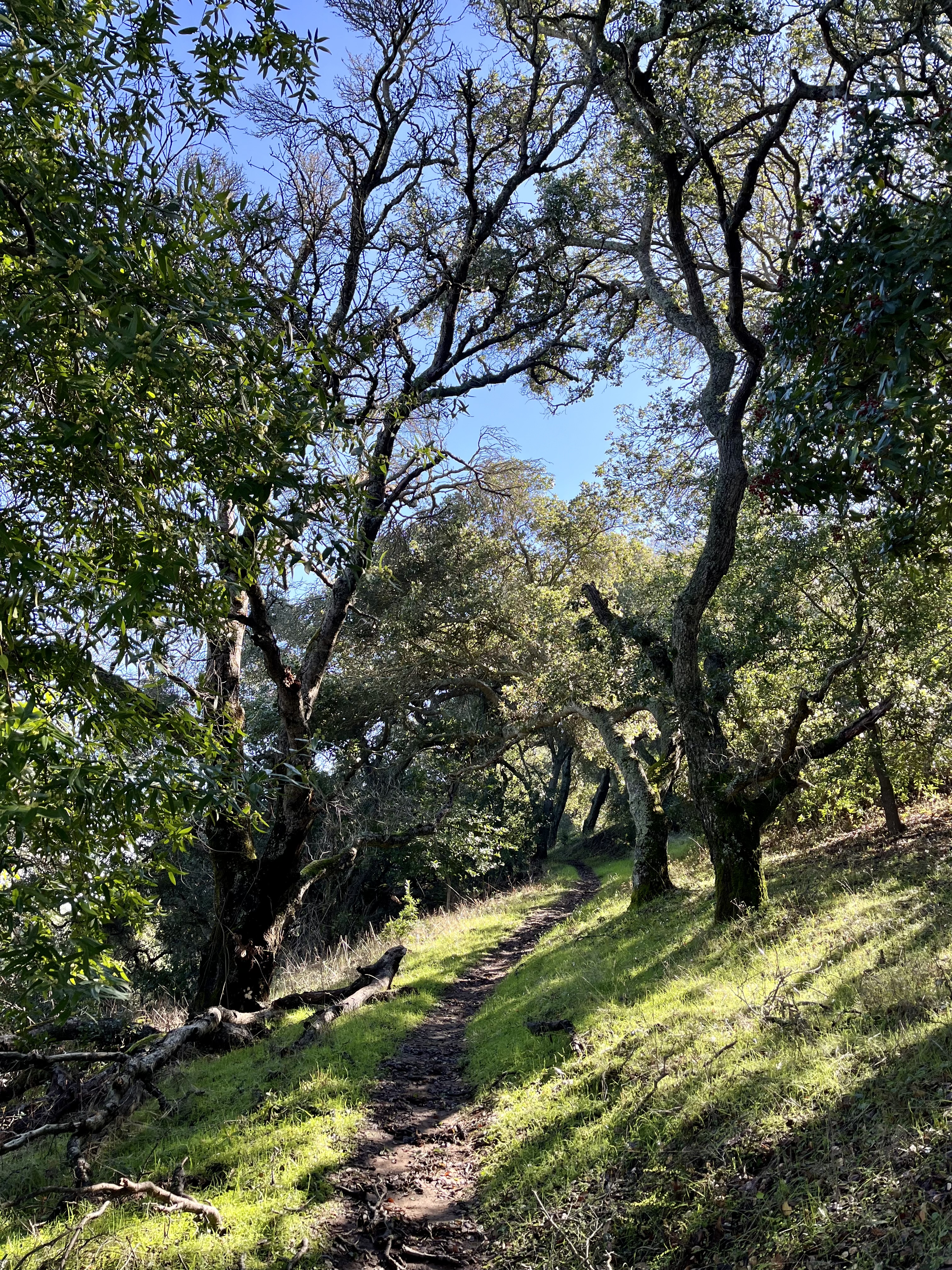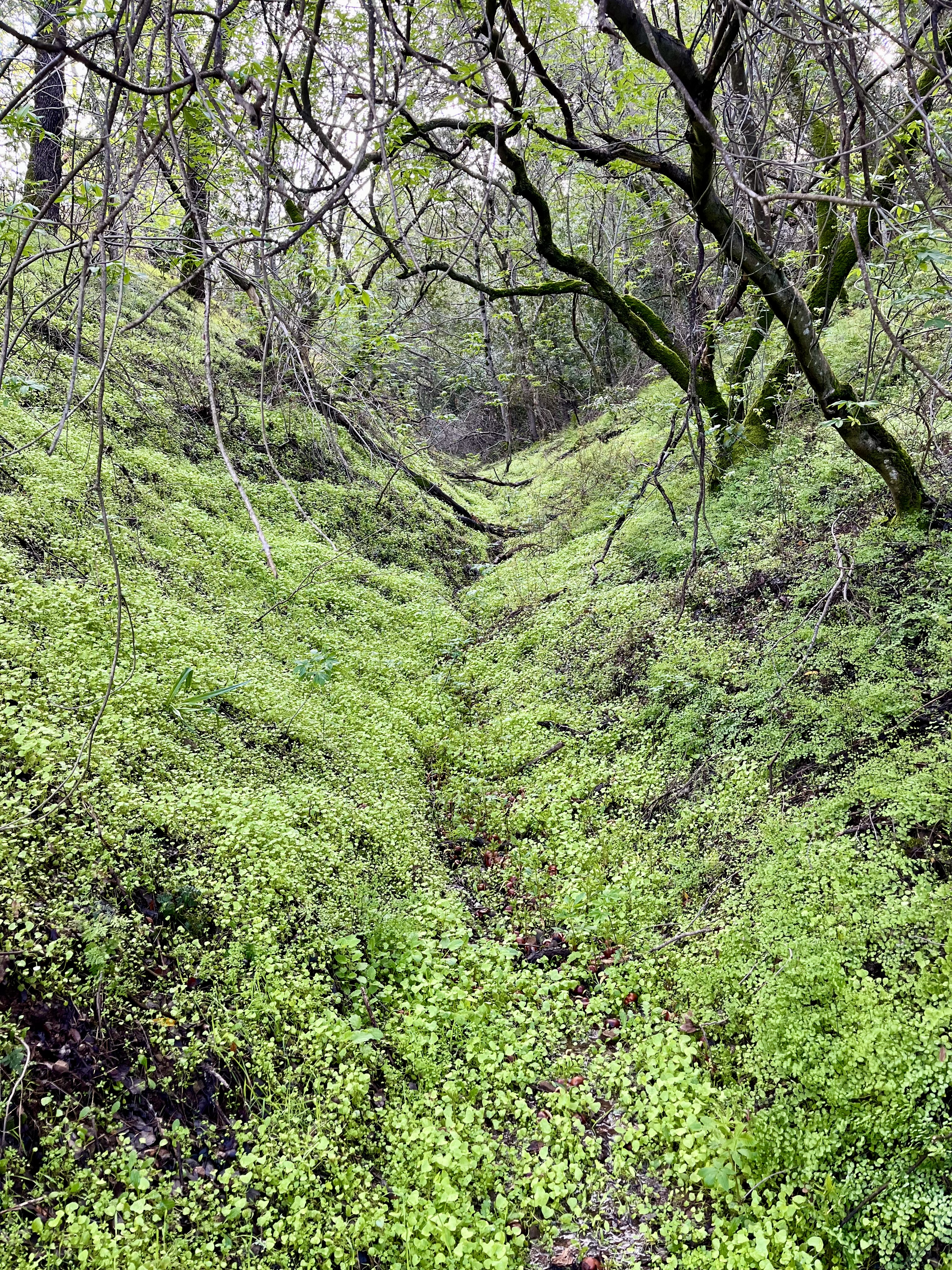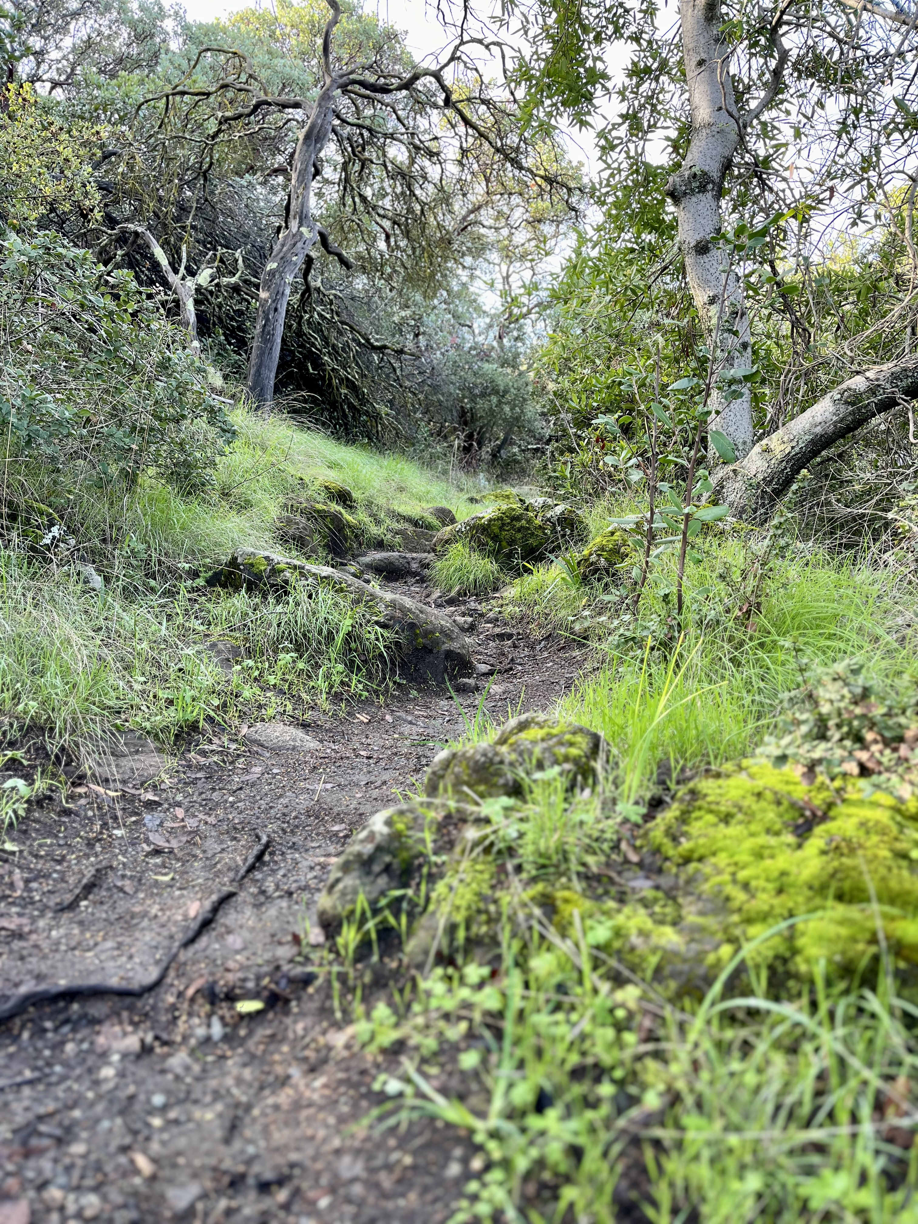 An immediate decision needs to be made as soon as you head to the trails, there are three directions available. I went straight down the middle to hit up the New Almaden Trail. This is a lovely single track trail that has the traveler climb multiple ridges and descend into the draw, where I crossed six small streams prior to switching trails.