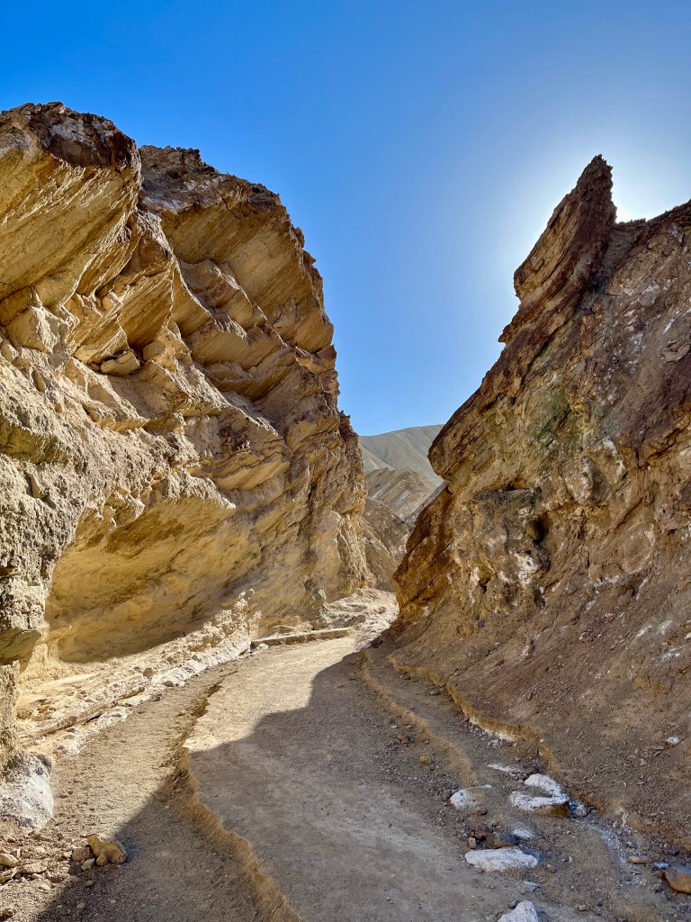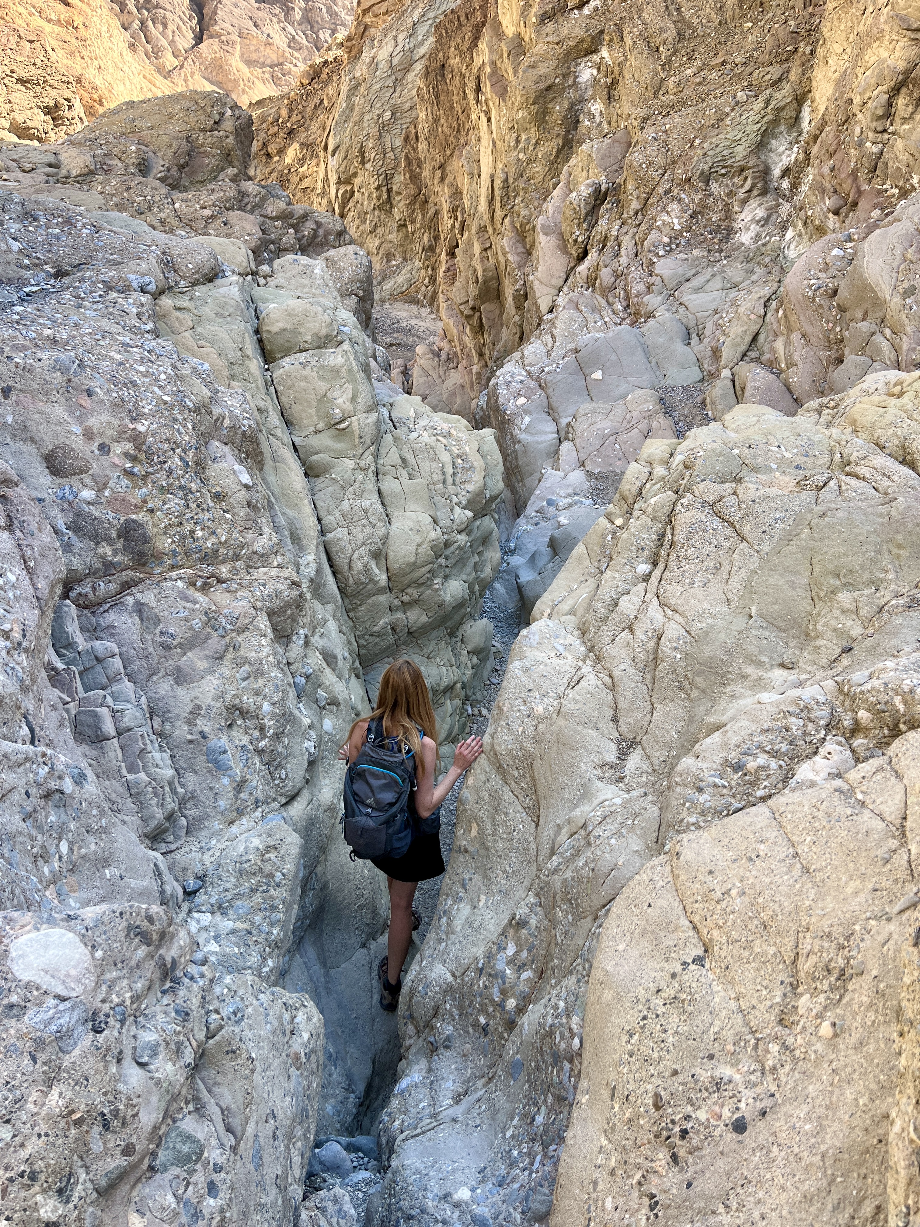 Both of us agree this was our favorite hike in the park. The sheer diversity of what you will see is impressive. Hiking through canyons, along the towering walls of Red Cathedral and Manly Beacon, views overlooking the winding canyons and into Badwater Basin. It gives an excellent taste of what Death Valley has to offer. We loved it, weary feet and all.
