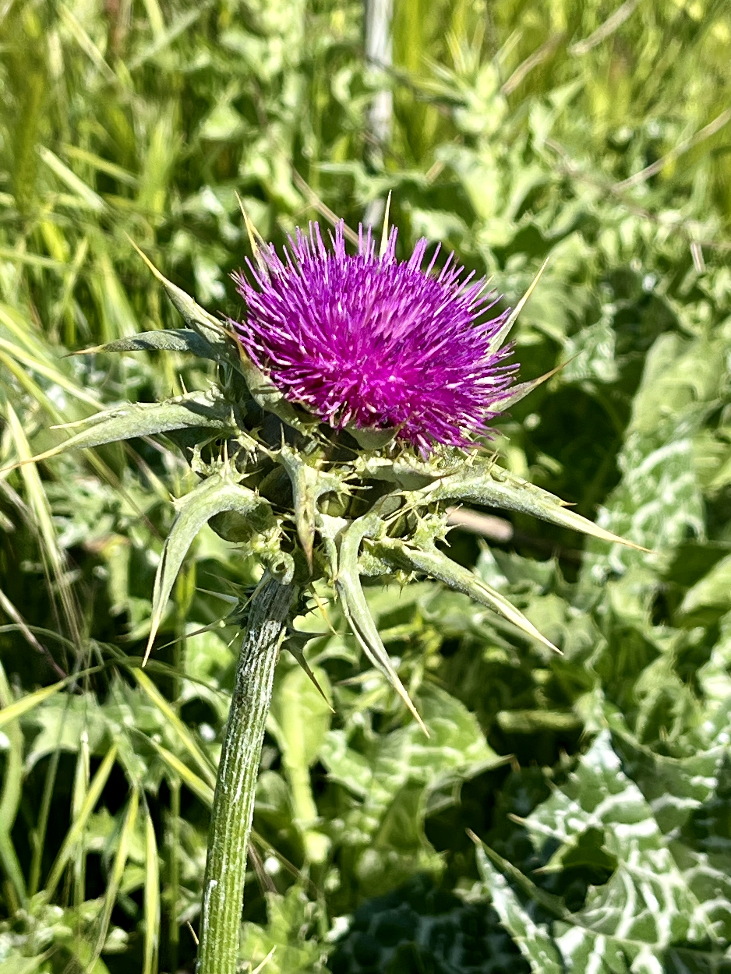 Eventually we connected back in with our original trail after blazing a path where one supposedly already was. You could see there used to be a road. But it was completely overgrown with thistle and weeds. Luckily we picked up zero ticks.