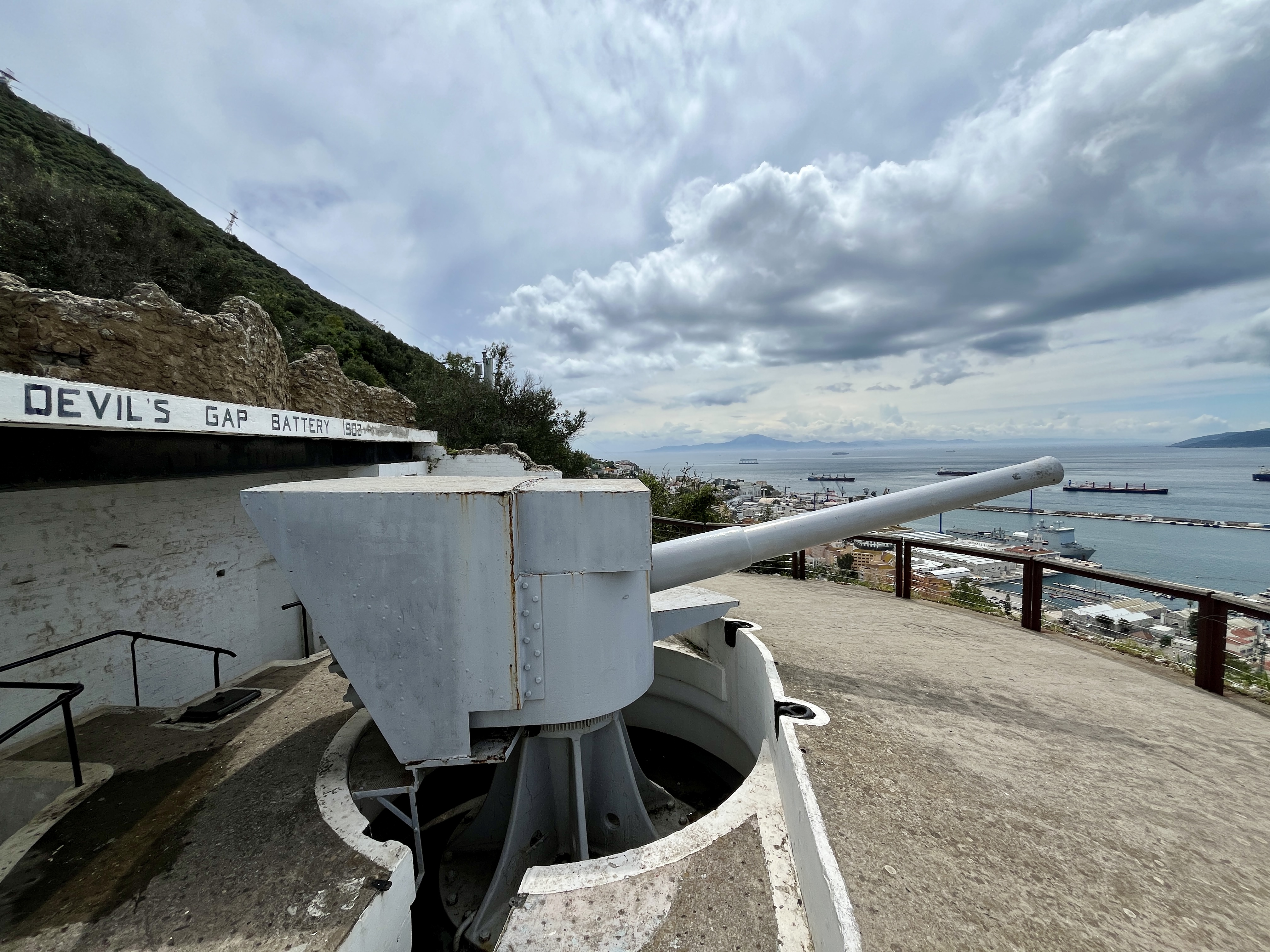 The Rock of Gibraltar has been used as a strategic military point for centuries. It overlooks the 8 mile wide entrance into the Mediterranean Sea from the Atlantic Ocean. The mountains of Africa can be seen on a clear day. Whoever has control of the rock could see ships coming and going and in essence, control the Sea.