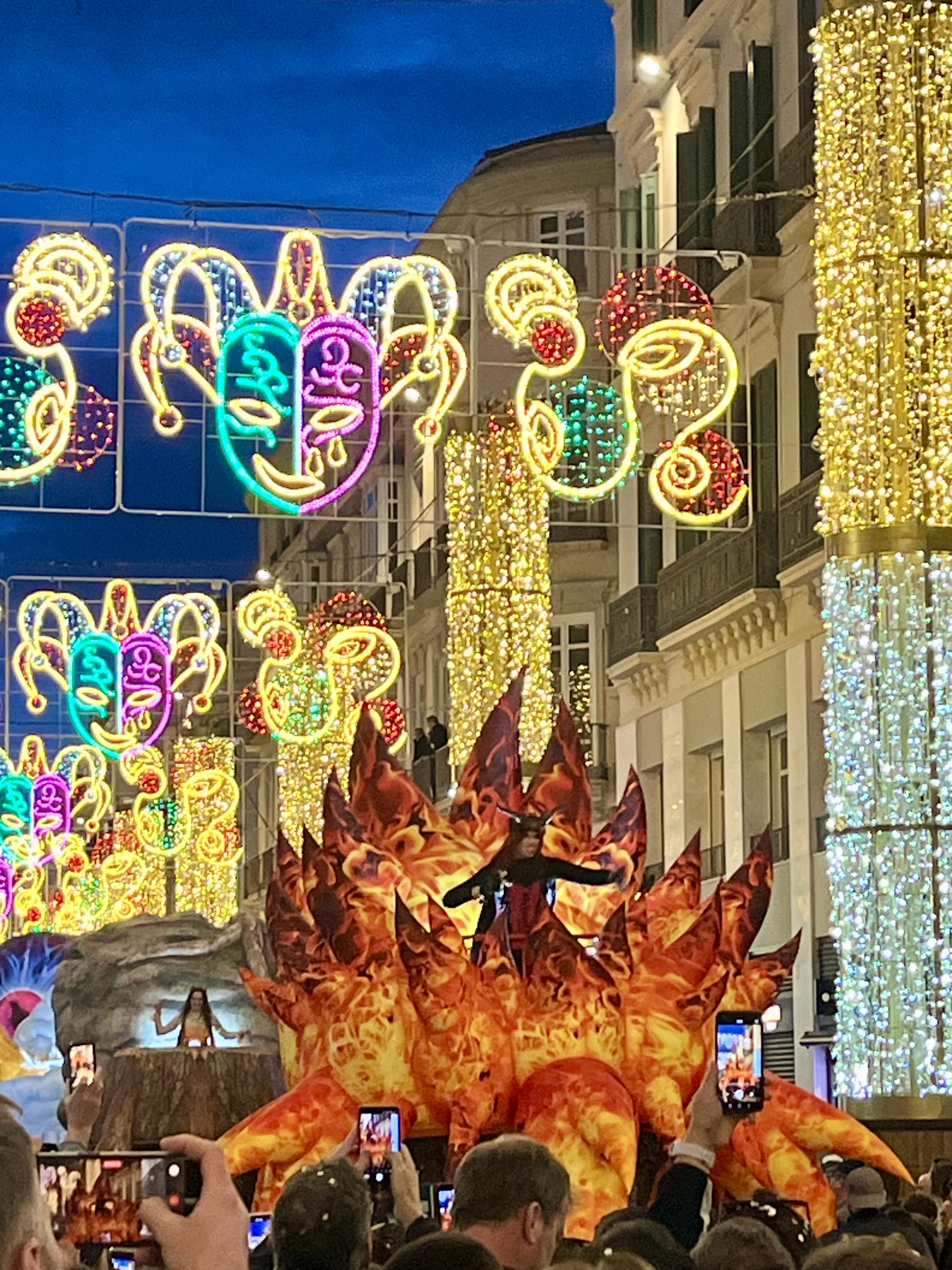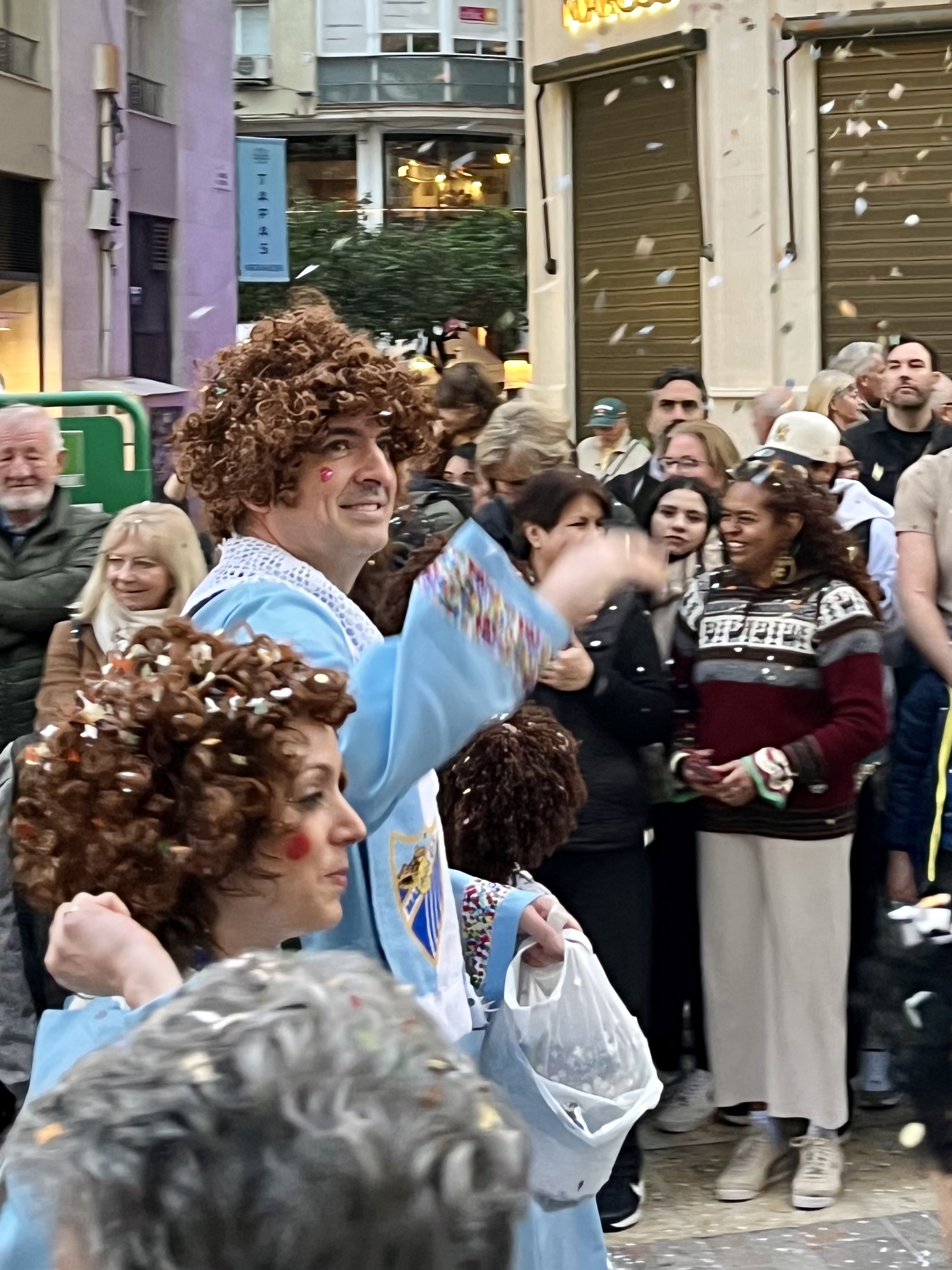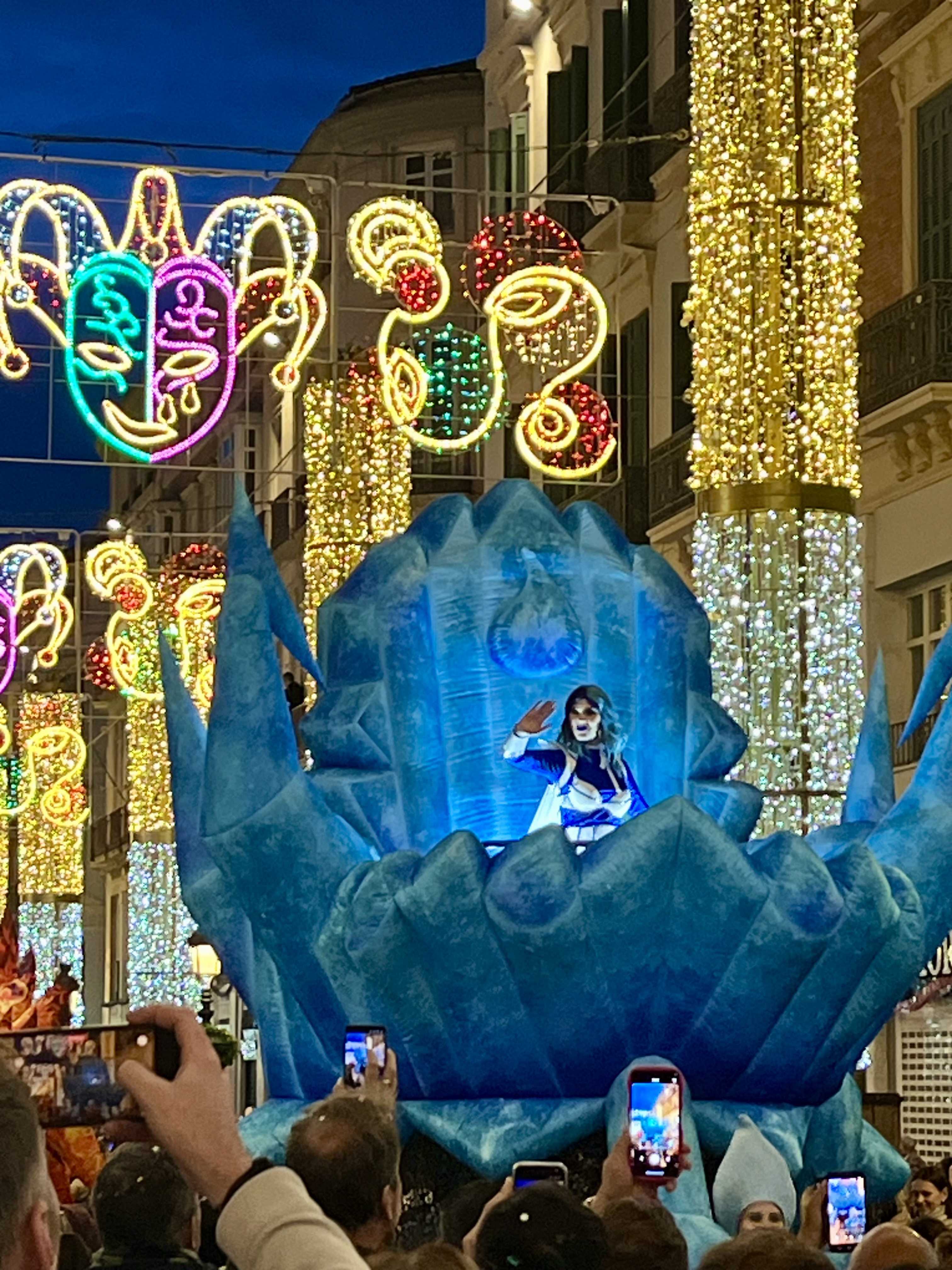 Eventually, we headed into Malaga center for the parade. And it did not disappoint. Light crowds lined the streets. Phones out and ready to capture the moment. Here came the Gods!