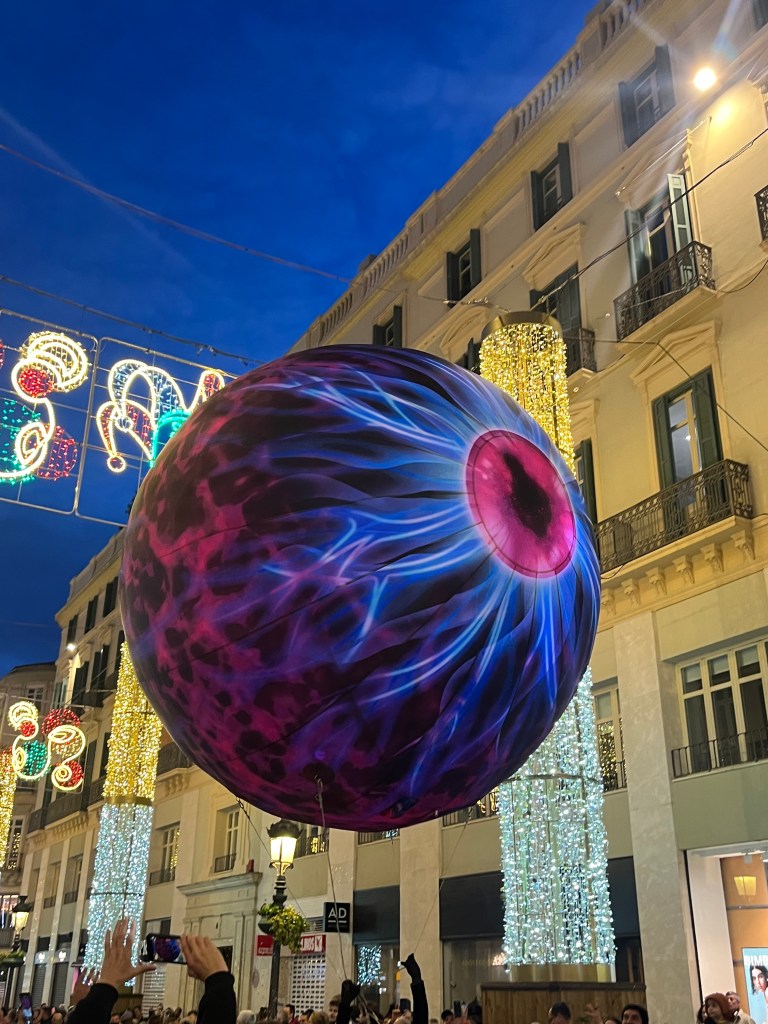 Randomly, a giant eyeball floated down the street. Reminiscent of a Muse concert Doug and I attended back in Seattle. I don’t care for Muse. In retrospect I’m uncertain why I attended said concert. Maybe FOMO? It was a weird concert complete with giant eyeballs floating over the crowds. The parade had only one enormous eyeball drifting along. Not sure why, but there’s many things I don’t yet understand about Spain. I am trying to absorb and engrain myself as much as possible. I am a guest here. I should hope I try my best to fit in. Thankfully the vast majority of Spanish natives have been nothing but gracious to us. They really are delightful people. I love it here.